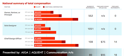 The AIGA|Aquent Survey of Design Salaries is the most comprehensive annual survey of compensation data for the communication design profession in the United States. Each year for more than a decade, it has been commissioned by AIGA, the professional association for design, with the support of Aquent, AIGA’s official sponsor...