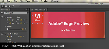 Adobe Edge is a new HTML5 web motion and interaction design tool that allows web designers to bring animation, similar to that created in Flash Professional, to websites using standards like HTML, JavaScript and CSS. Adobe is adopting an open development methodology for Adobe Edge and is releasing the software...