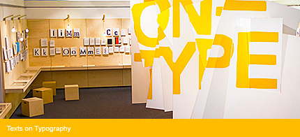 ON-TYPE: Texts on Typography, on view at the Bauhaus Archive from May 8 to August 5, 2013, is an interactive exhibition conveying milestones from the history of typography over more than 100 years. The exhibition will offer a multisensory experience of the way in which one font is never equivalent to another....